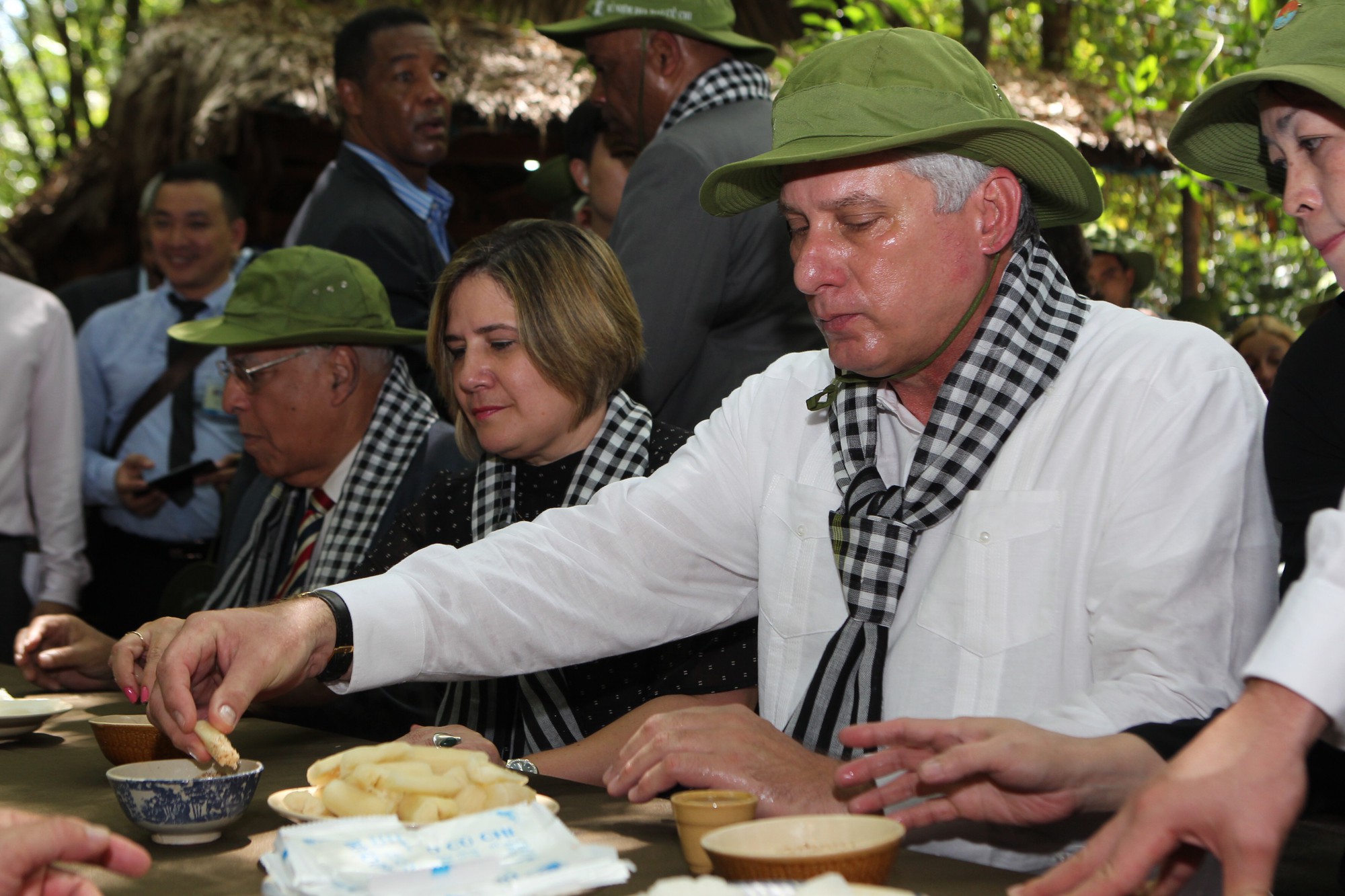- Thưởng thức khoai mì với muối mè, món ăn gắn liền với thời kháng chiến.