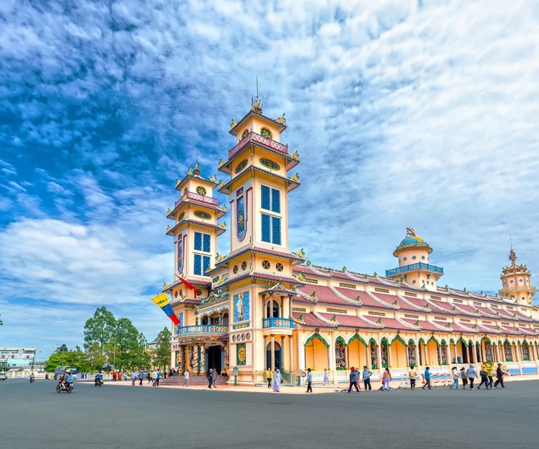 Tòa Thánh Tây Ninh (Đạo Cao Đài) – công trình kiến trúc tôn giáo rực rỡ, là trung tâm đạo Cao Đài lớn nhất Việt Nam, thu hút du khách từ khắp nơi đến tham quan và tìm hiểu văn hóa.